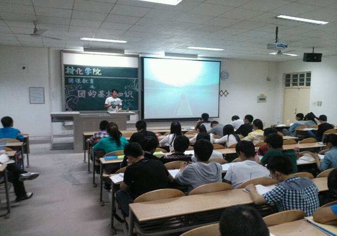 首先,宣传部部长王赟运向同学们讲解了共青团的内容,共青团的性质,入团的程序,团旗、团歌、团员证,共青团的历史,团员的权力与义务,以及奖惩的情况,引用马克思的话,解释了权力与义务的关系,讲述了共青团的组织原则,共青团的纪律而且提出“怎样才算是一个合格团员”的思考。心育部副部长梁檀通过分享自己的经历向大家讲解如何适应大学生活,适应新环境,构建、谋划未来,利用大学中的教学资源,学会团结、协作,并强调了应该处理好人际关系,达到双赢。组织部部长李翊璐通过分享自己的心路历程,让大家了解了大学生活以及如何适应大学生活。