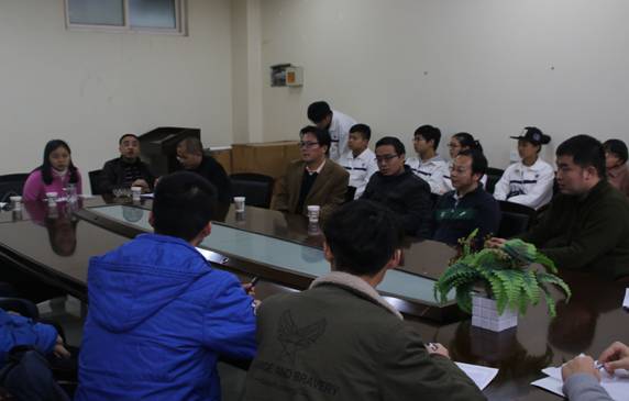 12级辅导员王国栋老师对大家的到来表示热烈的欢迎,同时,他还鼓励到场同学积极提出自己在本专业学习中所存在的问题,能在与老师的相互沟通中,找到高效可行的方法,以最短的时间解决学习中的问题。到场的同学们热情高涨,主要从以下两方面向在场的老师们做了请教:1、实际学习中存在的问题;2、以后工作中存在的问题。交谈中,老师们对于每位同学提出的问题都做出了非常客观、细致的解答,并提出了自己的看法和建议。最后,张治宏老师根据大家提出的问题,对同学们作出了以下几点要求:1、要实事求是,做到知之为知之,不知为不知;2、虚心向他人请假,不要形成一种闭关锁国、闭门造车的思想;3、博览群书,开阔视野;4、了解当前时事,对自己作出明确的定位。本次座谈会在一阵热烈的掌声中圆满结束。