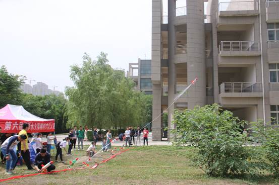 本次比赛分为上午与下午两场。分别于2018年5月27日上午九点至十一点半和下午三点至五点进行。上午9点整,选手们全部到场完成签到,由科协主席南亚新对选手们进行比赛规则的讲解,然后选手们开始做赛前准备工作,准备工作完毕后,随着现场工作人员的指令,热火朝天的水火箭大赛正式开始。同学们各出奇招,充分发挥创新意识和动手能力,各式各样的水火箭令人目不暇接。比赛期间,各组选手都丝毫不敢懈怠,在场地对火箭进行精心的调试,使得水火箭发射后直冲蓝天,划过一道优美的弧线后安全落在远方的空地上,围观的同学爆发出阵阵惊叹声和欢呼声。最终,以郭少恒、李喆、刘钰欣、赵鑫、毛小雨、于芳芯为队长的六组同学取得前六名。至此,本次比赛圆满结束。